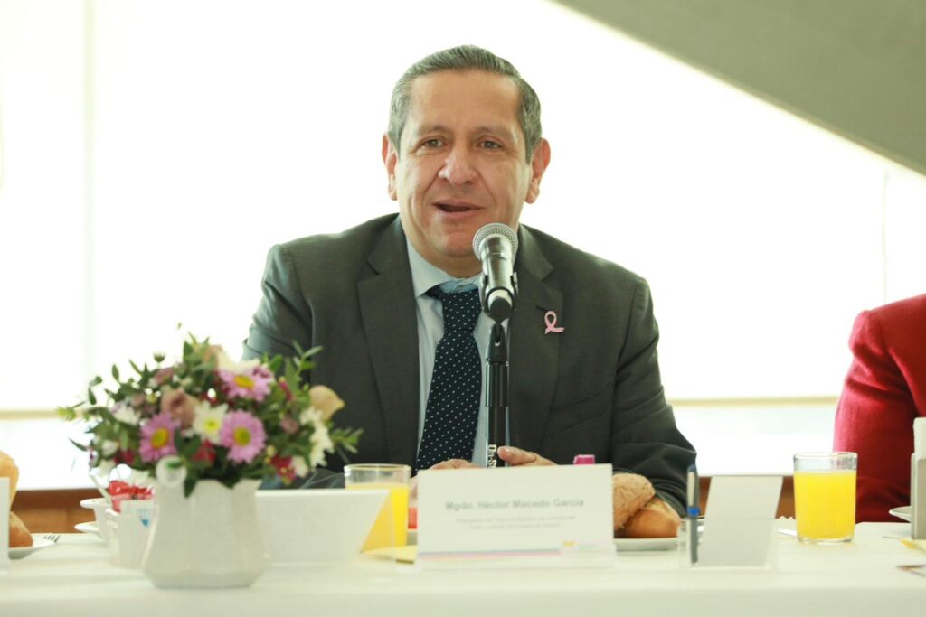 Acompañada por el Magistrado Héctor Macedo García, Presidente del Tribunal Superior de Justicia y ante las y los integrantes del Voluntariado, Gorostieta Uribe delineó las acciones que consolidarán a este organismo como un espacio de solidaridad, compromiso y justicia social.